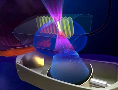 High Intensity Focused Ultrasound (HIFU) uses ultrasound energy, or sound waves, to heat and destroy specifically targeted areas of cancerous tissue in the prostate. During HIFU, the sound waves pass through healthy tissue without causing damage. However, at the focal point of the sound waves the tissue temperature rises rapidly to 90 degrees Celsius, destroying the targeted tissue. The same principles are used when light is focused through a magnifying glass.